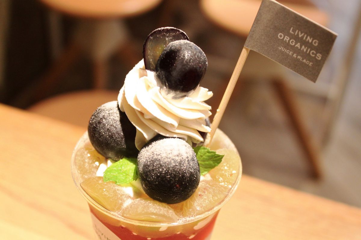 「リビングオーガニックス」を訪れるもうひとつの楽しみは、豆乳ホイップを使った季節のパルフェ。春先のイチゴに始まり、初夏のマンゴー、真夏のメロンやスイカ、秋には巨峰が登場。「1年待ちました!」というファンも多い、看板メニューのひとつです。