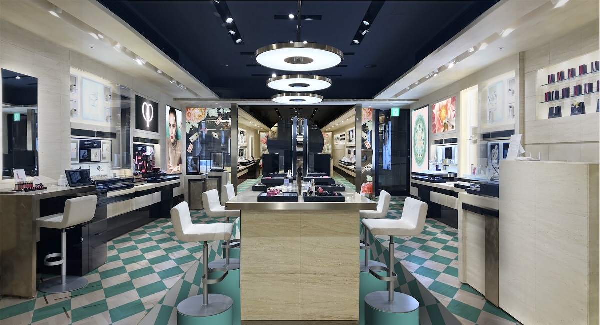 クレ・ド・ポー ボーテの店舗の入口にはトリックアートの仕掛けが。一歩入って後ろを振り向けば、マジックミラーによって出口がなくなったかのような錯覚が楽しめます。