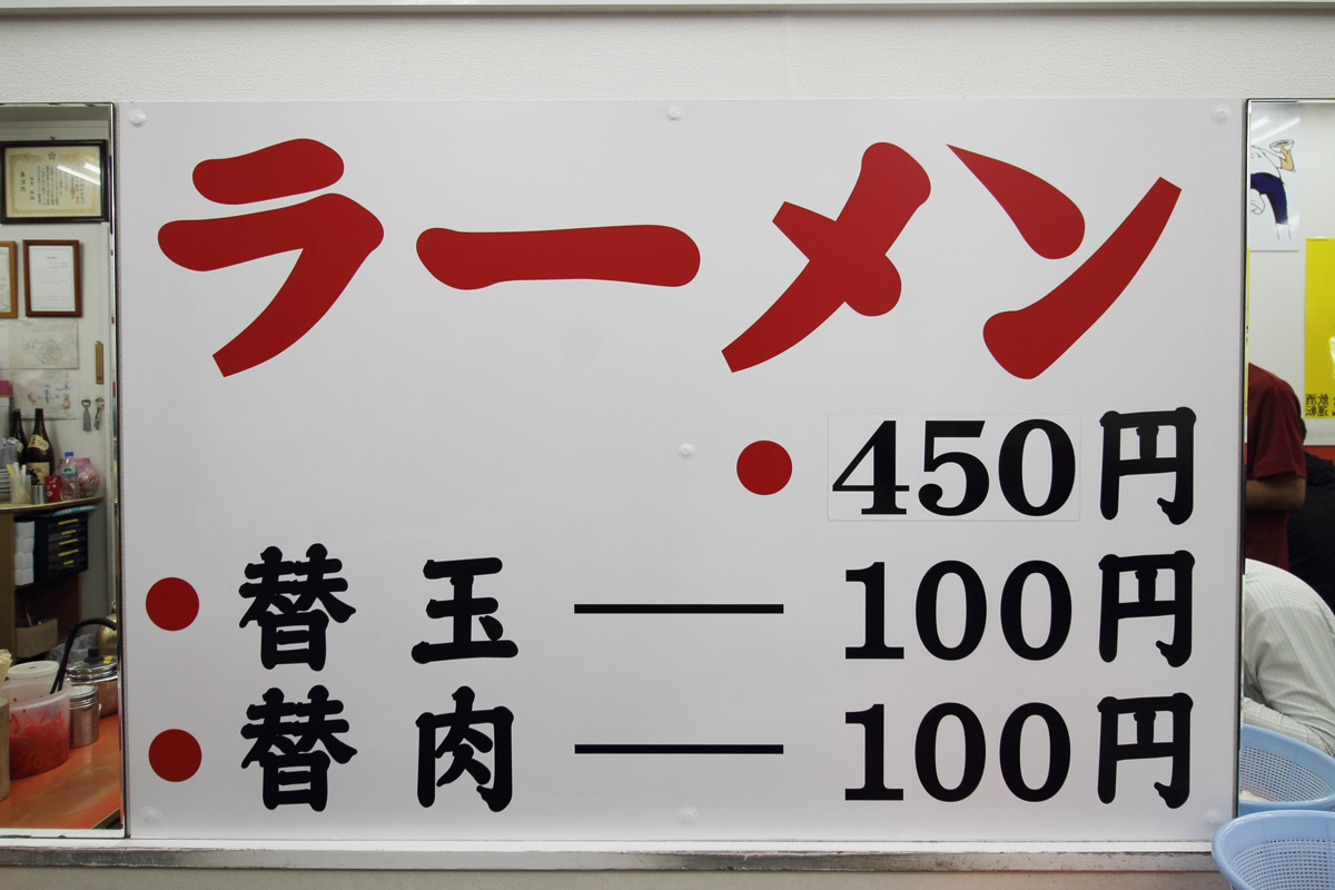 メニューはひとつ、ラーメン!だけですが、麺の固さや薬味で自分流の味を探すのがツウ。席に着いたら、麺の硬さ「ナマ・カタ・フツウ・ヤワ」、脂の量「ベタ・フツウ・ナシ」をお店の人に伝えると、「ベタナマ!」「ナシカタ!」などのオーダーが飛び交い、聞いているだけでも楽しくなります。