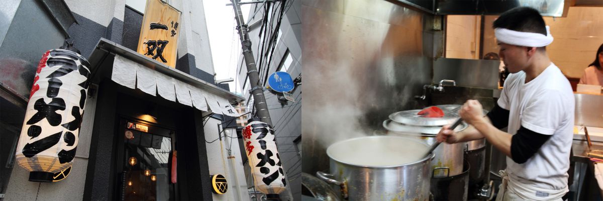 博多駅筑紫口から徒歩6分。ビジネス街の一角に提灯が揺れる「博多一双 博多駅東本店」。平日は深夜まで客足が途切れることなく、休日ともなると50人以上の行列ができることもある人気店です。