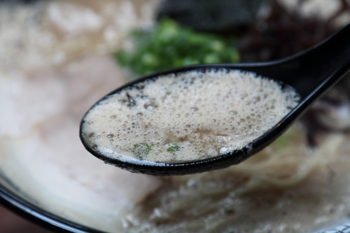 トロリとクリーミーなスープのこだわりは、油を一切使っていないこと。また豚骨の中でも豚足を多めに配合することで、豚足のコラーゲンが溶け出し、自然なトロミが生まれるのです。一見濃厚ですが、実は脂ゼロ!しかもコラーゲンたっぷりだなんてお肌も喜びそう。