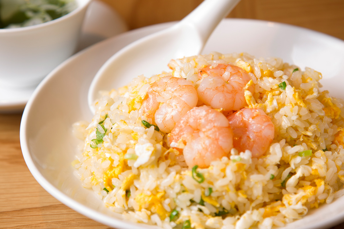 点心以外に、前菜やスープ、麺類、ご飯物も大充実。えび入りチャーハン(1188円)は、あっさりとした塩味で、米の一粒一粒までしっかりと炒められ、しっとりなのにパラパラ。家庭ではまねできない、プロの技を感じる逸品です。