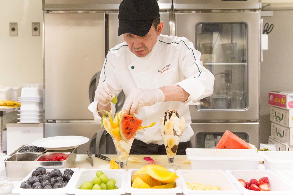 パフェに使うフルーツは、切り置きせず注文のたびにカット。果実のおいしさにこだわる専門店のプライドがここにも!