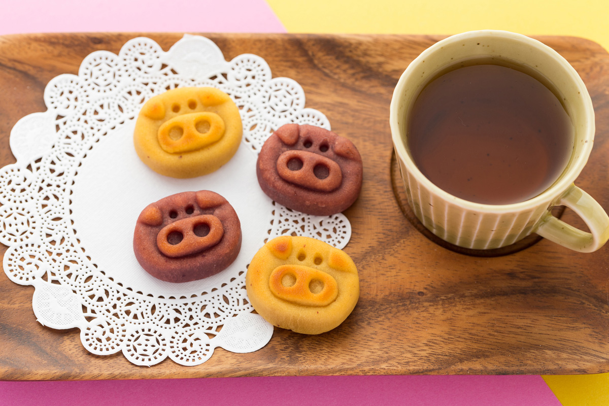さつまいも土産のパイオニア「山福製菓」が手がけた渾身の逸品。その名も「スイートポテトン」。パッケージを開ければ、思わず写真におさめたくなるキュートな子ブタたちが顔を出します。