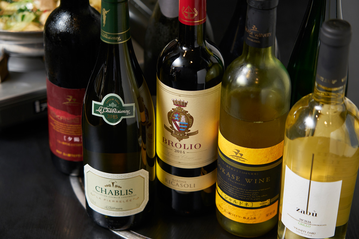 馬刺しや博多焼ぎょうざ、胡麻さば、佐賀牛サイコロステーキなど、もつ鍋以外の九州名物も多数。さらには、もつ鍋に合うワインも充実しています。赤、白、スパークリングと豊富に取り揃うなか、注目は宮崎県で醸造される「五ヶ瀬ワイン」。濃厚なもつと、九州のおいしい水で醸されたワインとのカップリングを満喫して。