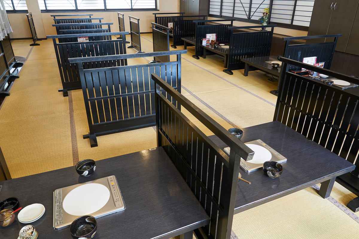 店内には、広い座敷が2部屋。合計で104席が入る開放的な造りですが、パーティションもあるため、周りを気にせずもつ鍋だけに向き合えます。地元の忘年会や歓送迎会、接待などでも御用達ですが、意外とひとり旅の女性客も多いのだとか。