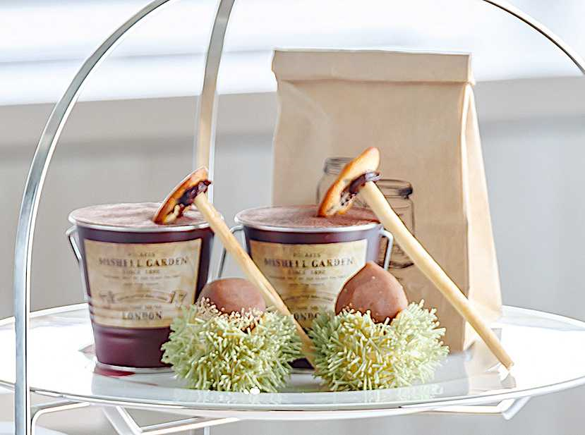 なかでも注目は、こちらの「いがぐりマロン」。なんと、栗のイガや植木鉢に立てかけてある鍬まで、すべてスイーツでできています!地元の食材と旬の味覚たっぷりの、大満足のアフターヌーンティーです。