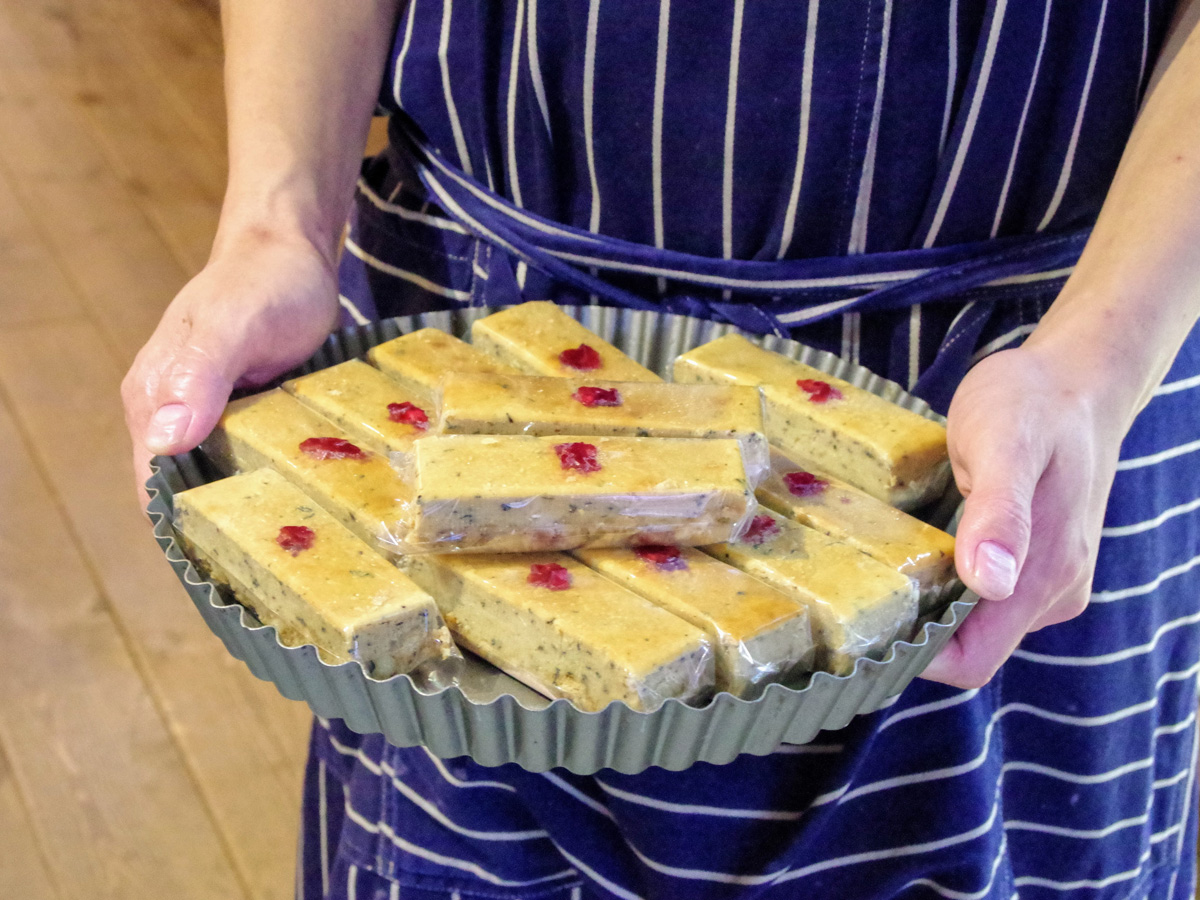熊本県産茶葉を使用したスパイスチャイチーズケーキ(350円)もオススメ。サンドイッチを食べた後のおやつや、気の利いた手土産として人気です。