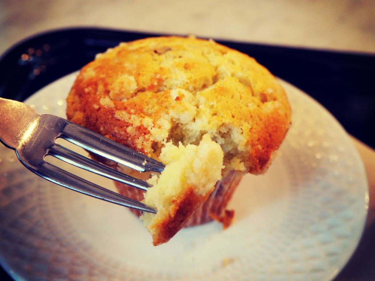 マフィンのまるいフォルムがとってもかわいらしい!鼻先を近づけるとブルーチーズのクセのある匂いと甘い匂いが。食べる前から「おいしい」と確信できる組み合わせです。