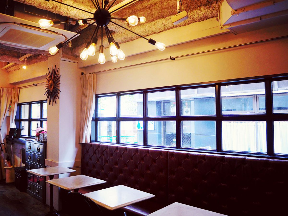 白い壁に白いテーブル、黒い椅子、モダンなインテリアで彩られた店内はとても都会的でありながらも、木目調のディスプレイや茶色いソファーがプラスされていることで、あたたかみを感じることもできます。それはまるで、洋画に出てくるお店のよう。高揚感と居心地の良さを感じられる空間です。