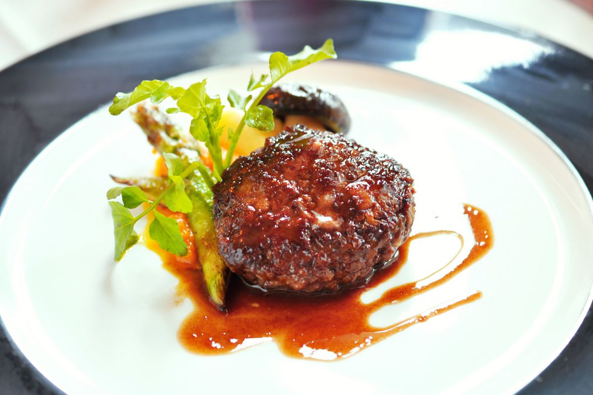 肉料理はエゾシカのポルペッタ(ハンバーグ)。新鮮で赤身中心の鹿肉は、臭みがなく肉のうまみがぎゅっと詰まっています。とろ~り甘い、ニンジン&じゃがいものピューレも最高!