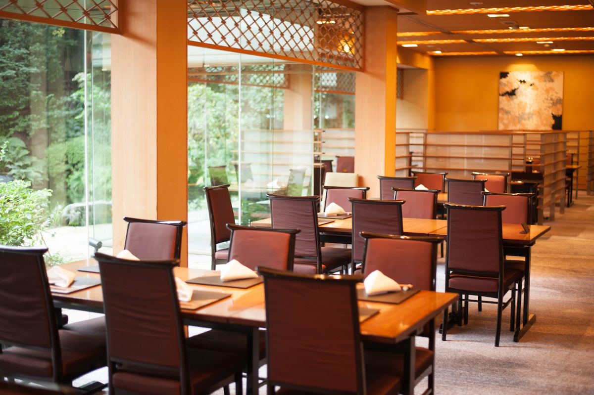 よく手入れされた日本庭園に面した店内は、開放感と落ち着きが同居する空間。各所に骨董品や日本画といった、上質な装飾品も。身を置くだけで心身が磨かれそうな、洗練された日本料理店です。