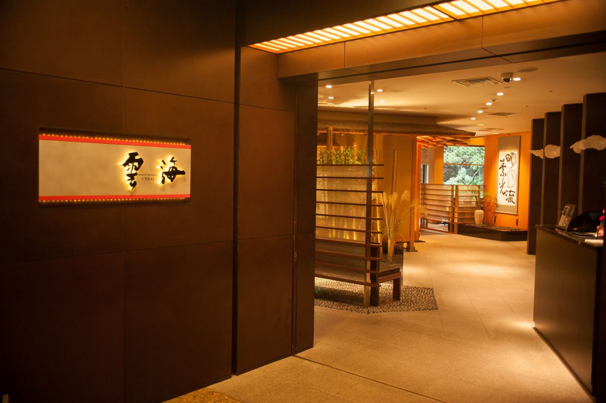 海外からのゲストが行き交うホテルのロビーを抜け、エスカレーターで3階へ上ると、日本料理「雲海」の入口が目に入ります。風格を感じさせますが、オープンな造りとなっているので、初めての人も入りやすいはず。