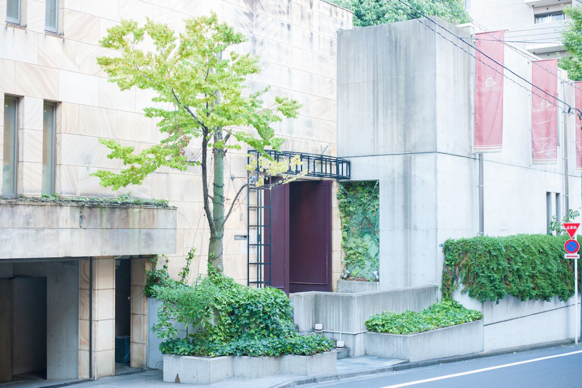 住宅街の一角にあるコンクリートの建物が「青山エリュシオンハウス」。外からは中の様子が見えない造りとなっていて、プライベートな時間を過ごすことができます。