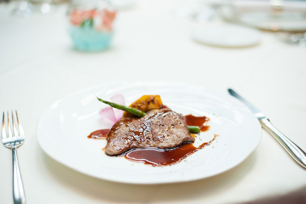 メイン料理の「仔牛ロースのソテー ローズマリーソース」は、脂が少なくヘルシーな仔牛を、ほんのり甘いマルサラソースで仕上げた一品です。