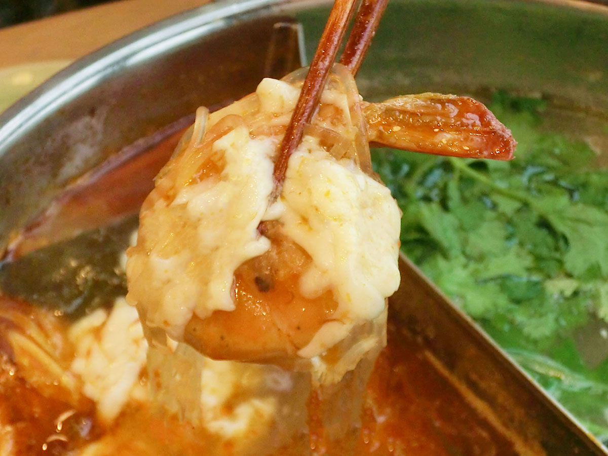 タイ料理といえばパッタイ、トムヤンクン、グリーンカレーなどが有名ですが、タイスキってご存知ですか?タイの屋台でも人気の、魚介や野菜をたっぷり入れた“タイ風水炊き鍋”のこと。鍋のスープは鶏ガラスープが一般的ですが「センディーテラス 銀座」では、ピリ辛味やココナッツミルク味、レモン味など、いろんなスープから選べるんです!