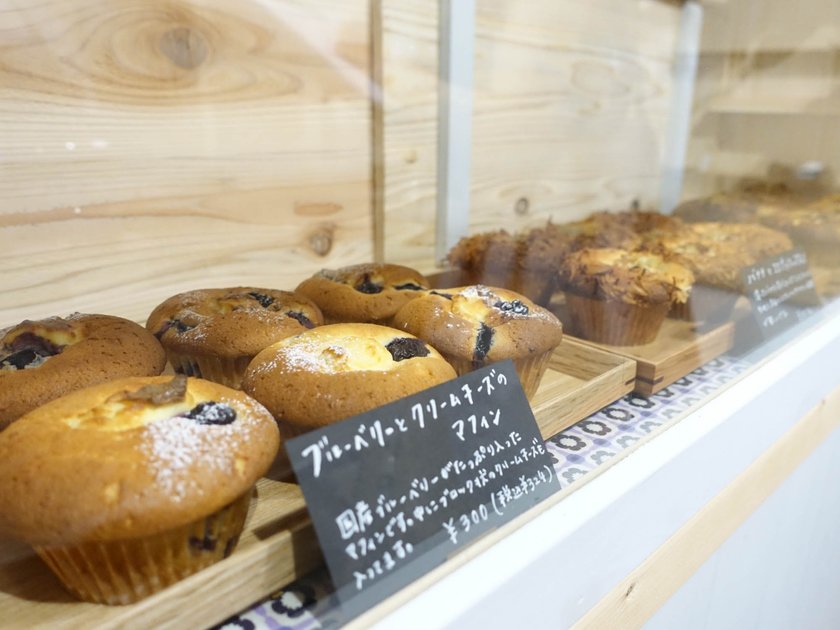 スコーンの中身は、チョコやオレンジなど、お店の方の気分次第で変わります。タルトやマフィンも、季節の果物によって種類が変わる、数量限定のレア商品です。