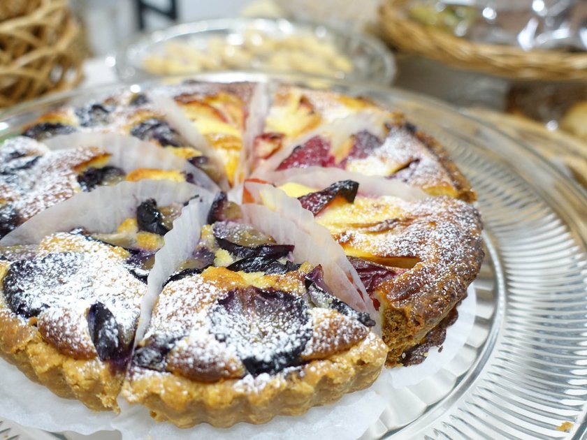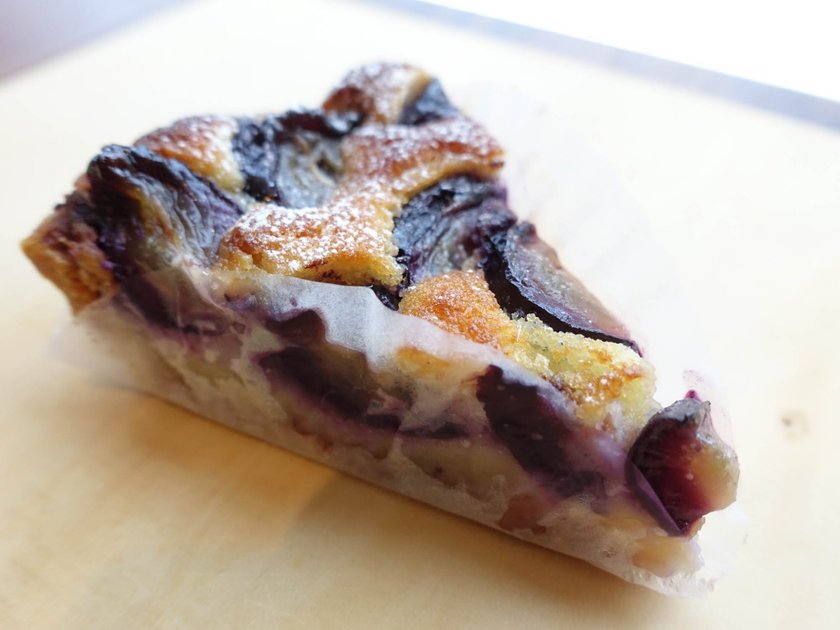 ピオーネがぎっしりと詰まった「三次産ピオーネタルト」(400円)は、クッキー生地のようにサクサクとしたタルトと、ピオーネの酸っぱさが絶妙なバランス。サクサクのタルトは、今までのタルトの常識を覆されます!