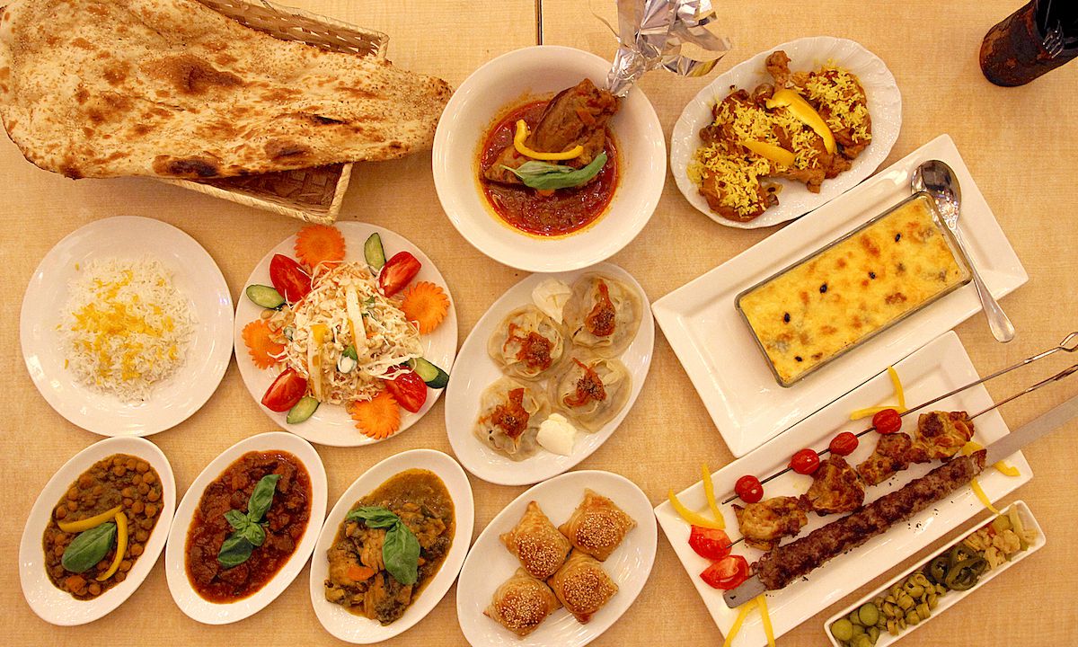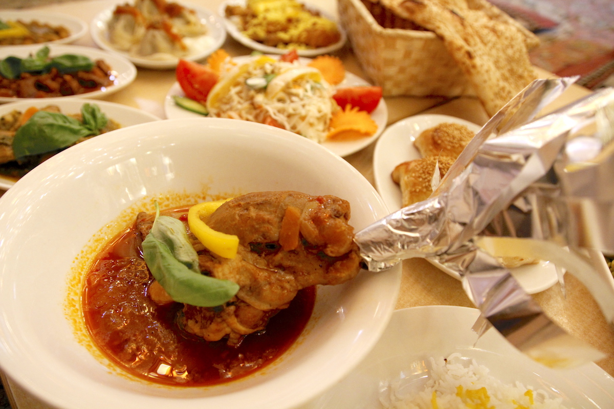 店内の写真撮影でひとしきり盛り上がったあとは、お楽しみの料理!「ザクロレストラン」ではイラン・トルコ・ウズベキスタンの料理を提供しています。ほとんどのお客さんが注文するのが、「食べきれないコース(2160円)」。