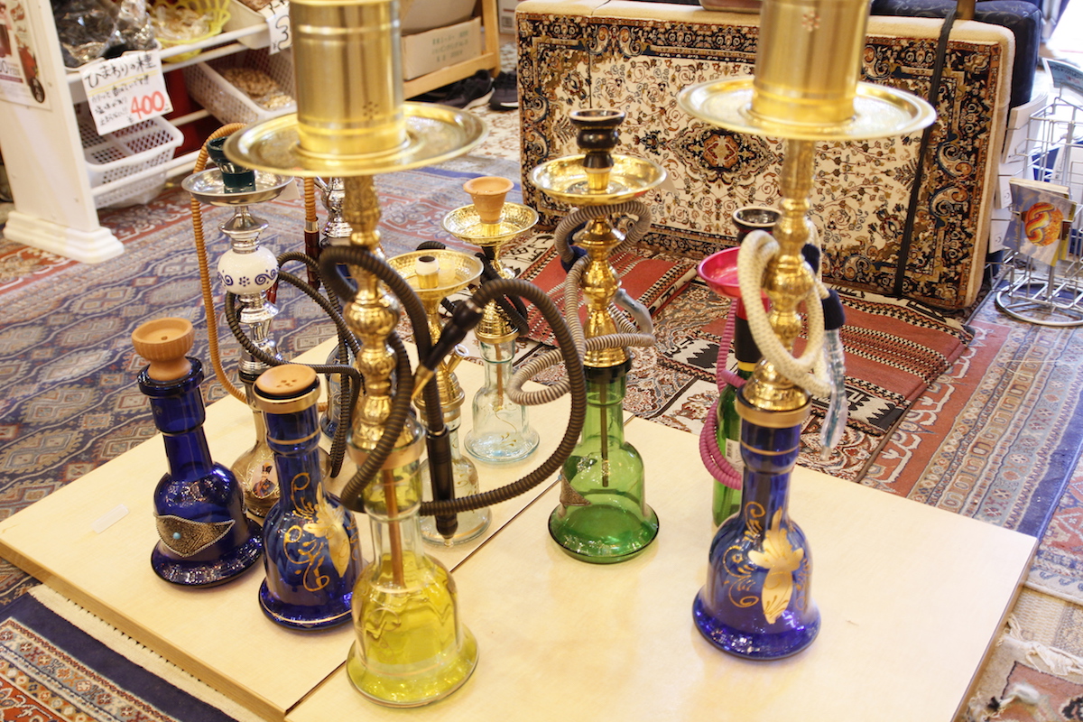 下町情緒漂う商店街の一角に、軒先で中東の雑貨を売っているお店。それが「ザクロレストラン」の入り口です。どことなく怪しげな雰囲気ですが勇気を出して店の奥に入ると、目に飛び込むのは無数のきらびやかなランプ。狭い入り口からパッと広がる幻想的な空間は、まるでアラビアンナイトの世界です。