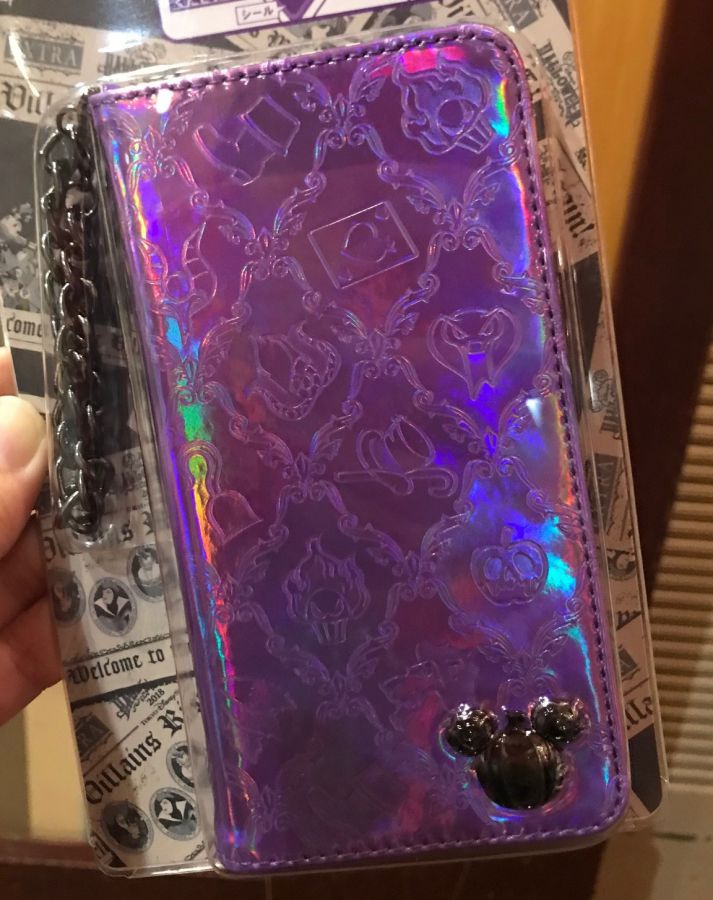 「スマートフォンケース」(3400円)はディズニー・ヴィランズをイメージさせるイラストがちりばめられたデザインと光沢のある紫のカラーが大人っぽい。iPhoneXを除く、各種スマートフォン対応。
