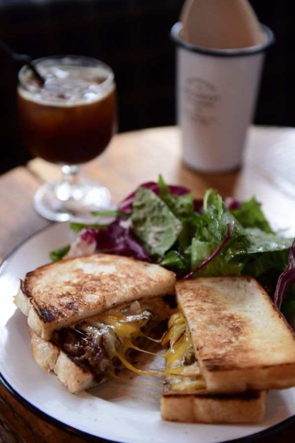たまらず口に運ぶと、サックリした食感と一緒に、ムギュッと弾力を持つパティ、オニオンの歯ごたえがベストマッチ!一瞬にして牛肉ならではの甘さを含んだ香りと、チーズの香ばしさが口の中を満たします。ハンバーガーほど厚みがないので、ひと口ですべての食材を味わうことができ、パンの端と中央部分で異なる食感が楽しめるのも高ポイント。ハンバーガーのようなボリュームとジューシーさを再現した、まさに「新感覚」のサンドイッチです。
