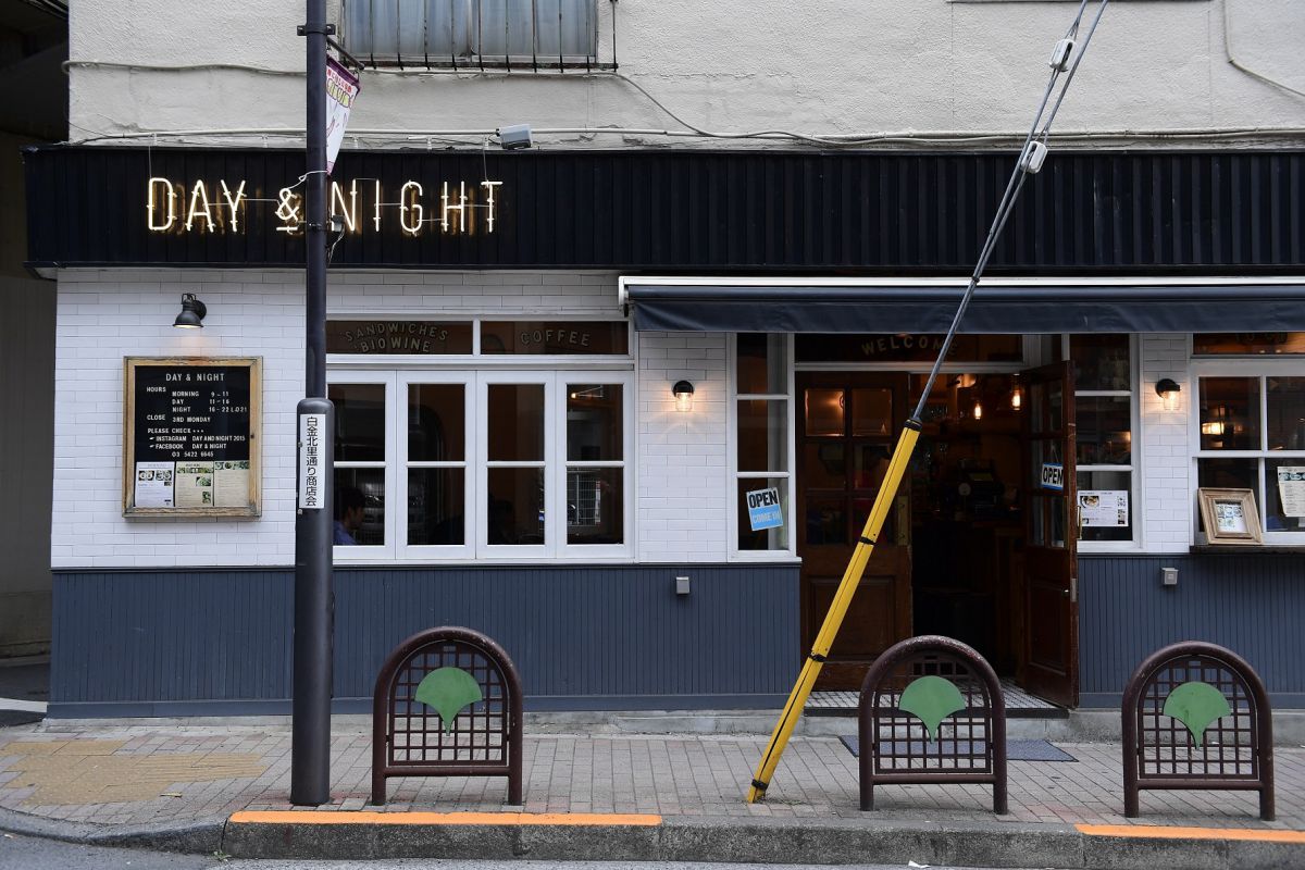 お店は、広尾と白金の中間地点となる「恵比寿三丁目」交差点から東に続く商店街の入り口あります。「バーガーマニア」があるのもこの商店街です。「お世話になった商店街、白金の入り口で何か面白いことがしたい」と始めたのが「デイ&ナイト」なのだとか。