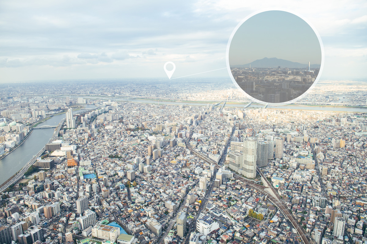 北の方角は安産、子宝、セックス、夫婦仲、病気、貯金などに関する願いに効きます。水と相性のいい方角なので、川を見ながらコマンドを立ててみて。ちょうど北の方角には、この高さからしか見られない、隅田川と荒川が交わる風景が見えました!