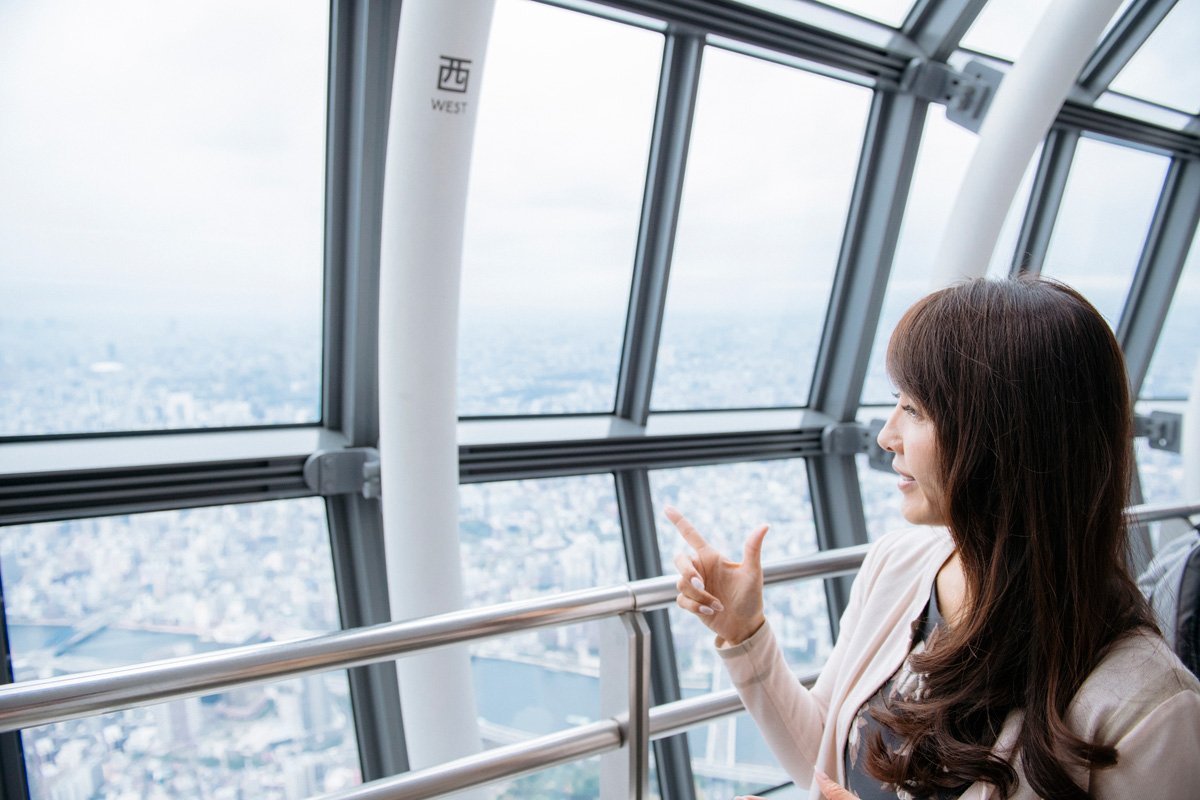 南東は、結婚運、ご縁、人間関係、良い噂が広がるなどの方角です。あべけいこさんによると、ご縁を運んでくる風を感じながら誓えば効果は抜群とのこと。10月から始まった「SKYTREE TERRACE TOURS(スカイツリーテラスツアー)」は、地上155m地点の屋外を見学できるので、南東のコマンドをかけるにはぴったり!