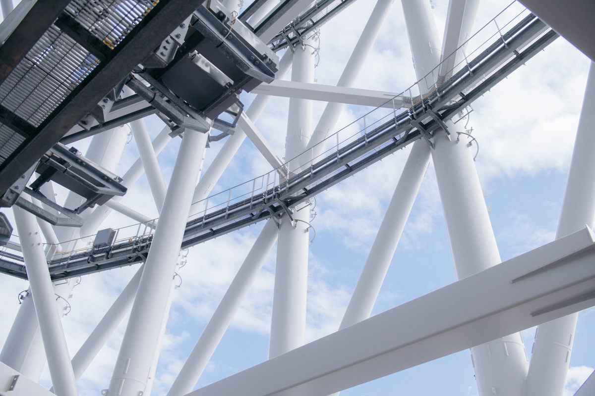 重厚な扉の先に広がる絶景に、わくわくが止まりません。ダイナミックな鉄骨越しに気持ちの良い風を感じながら、南東に向かって願いを込めましょう。街をつなぎ人の行き来を可能にする“橋”も、ご縁の運には効果あり。ちょうどこの方角には、川にかかる橋がいくつも見られるのでおすすめです。