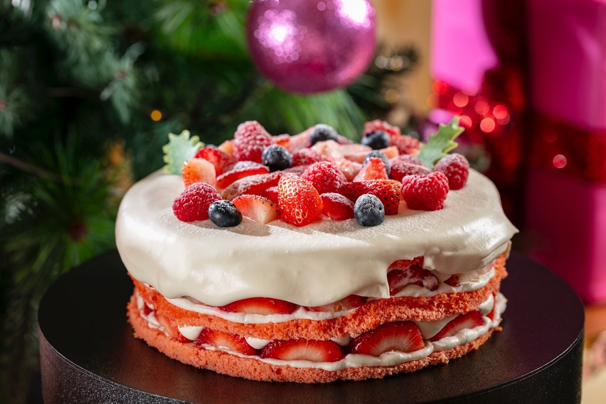 昨年からの人気アイテムも再登場。サンタのお腹をイメージした「ダイエットは明日から クランベリーマスカルポーネサンタケーキ」はネーミングもインパクト大!