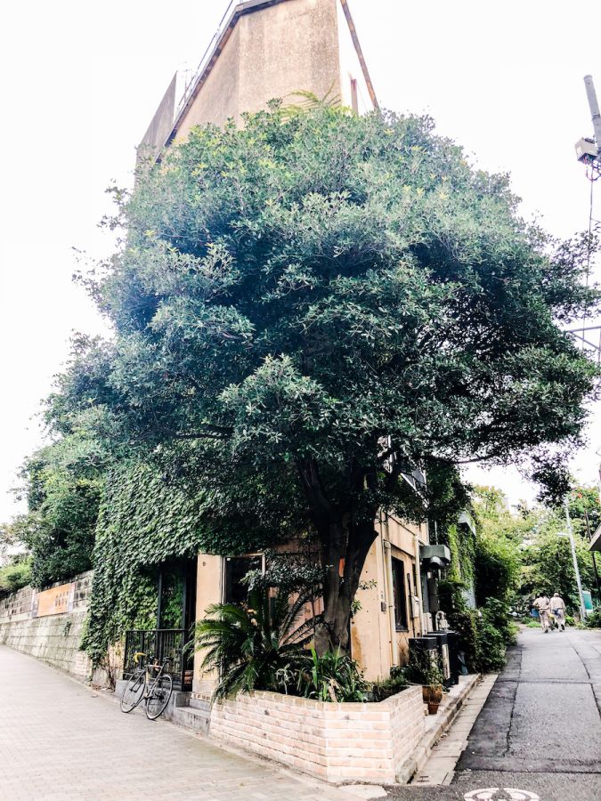 「カクルル コーヒー ミュージック ギャラリー」は、池袋の中心から少し外れた大通りにひっそり佇む隠れ家のようなお店です。入口の前にそびえ立つ、モコックという名の大きな木が目印。実はここ、元々新聞配達所だった場所を、店主がデザイン事務所と協力してリノベーションしたそう。店のシンボルとも言える、蔦で覆われた緑の外観が目を引きます。