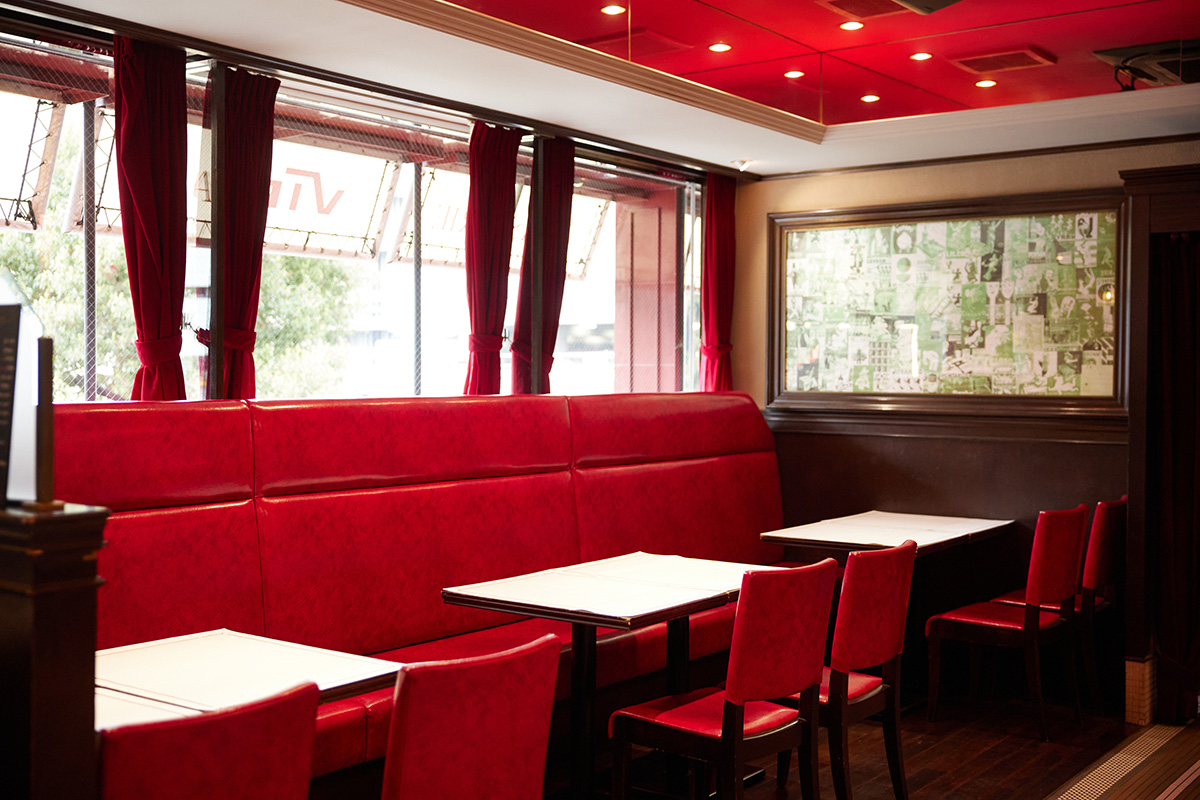2階には、赤をベースにしたインテリアが並びます。BGMにはパリの街を彷彿とさせるアコーディオンが響く音楽が流れ、渋谷にいながらもまるでパリにいるかのよう。朝の時間は窓から穏やかな朝の光が降り注ぎ、パリさながらの朝食を楽しむことができますよ。