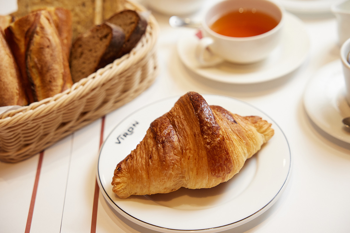 モーニングは、「タルティーヌ」1760円と「ヴィロンの朝食」2200円の2種類。軽めにバケットだけ食べたい場合は「タルティーヌ」、しっかりと朝食を食べたい場合は「ヴィロンの朝食」がおすすめだそうです。今回は優雅にパリの朝ごはんを楽しむべく、「ヴィロンの朝食」をチョイス。ちなみに訪れる人の9割が、こちらをオーダーするそうです。