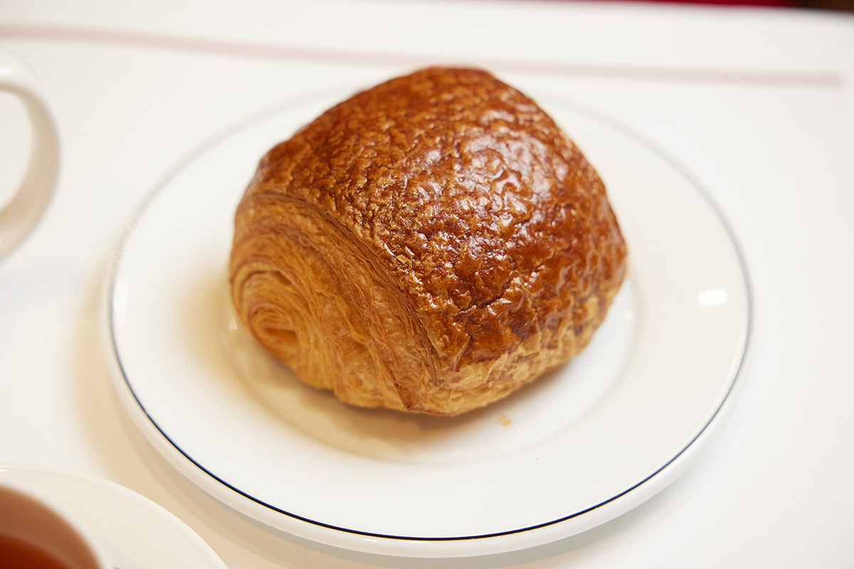 ちなみに、サクサクしたパイ生地にリンゴのコンポートが入っているフランスのアップルパイ「ショーソン・オ・ポム」は、モーニングでの提供は5個限定だそう。そんな話を聞きながら迷いつつも、今回は定番だという「クロワッサン」と「パン・オ・ショコラ」を選びました。