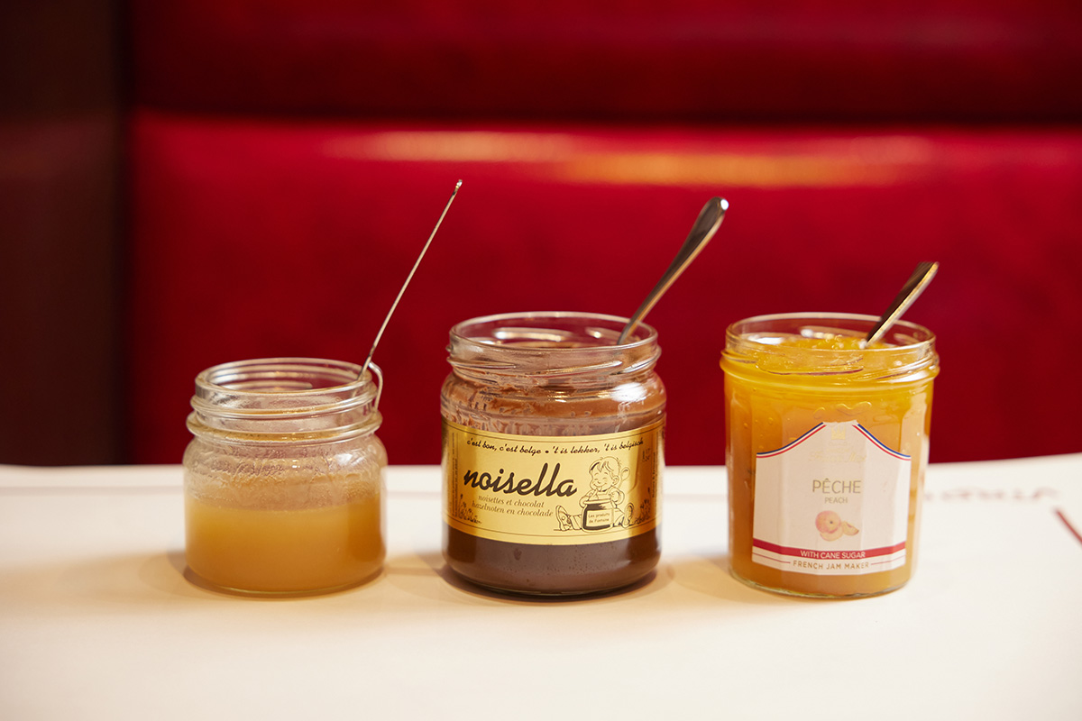 オーナーのこだわりというチョコレートクリームは、noisella社のもの。ベルギー産のチョコレートを使用しています。はちみつは、オレンジの花から採れたものを厳選。ジャムやチョコレートクリームはパリで実際に買うことができ、現地のホテルなどで提供されているものだそうです。