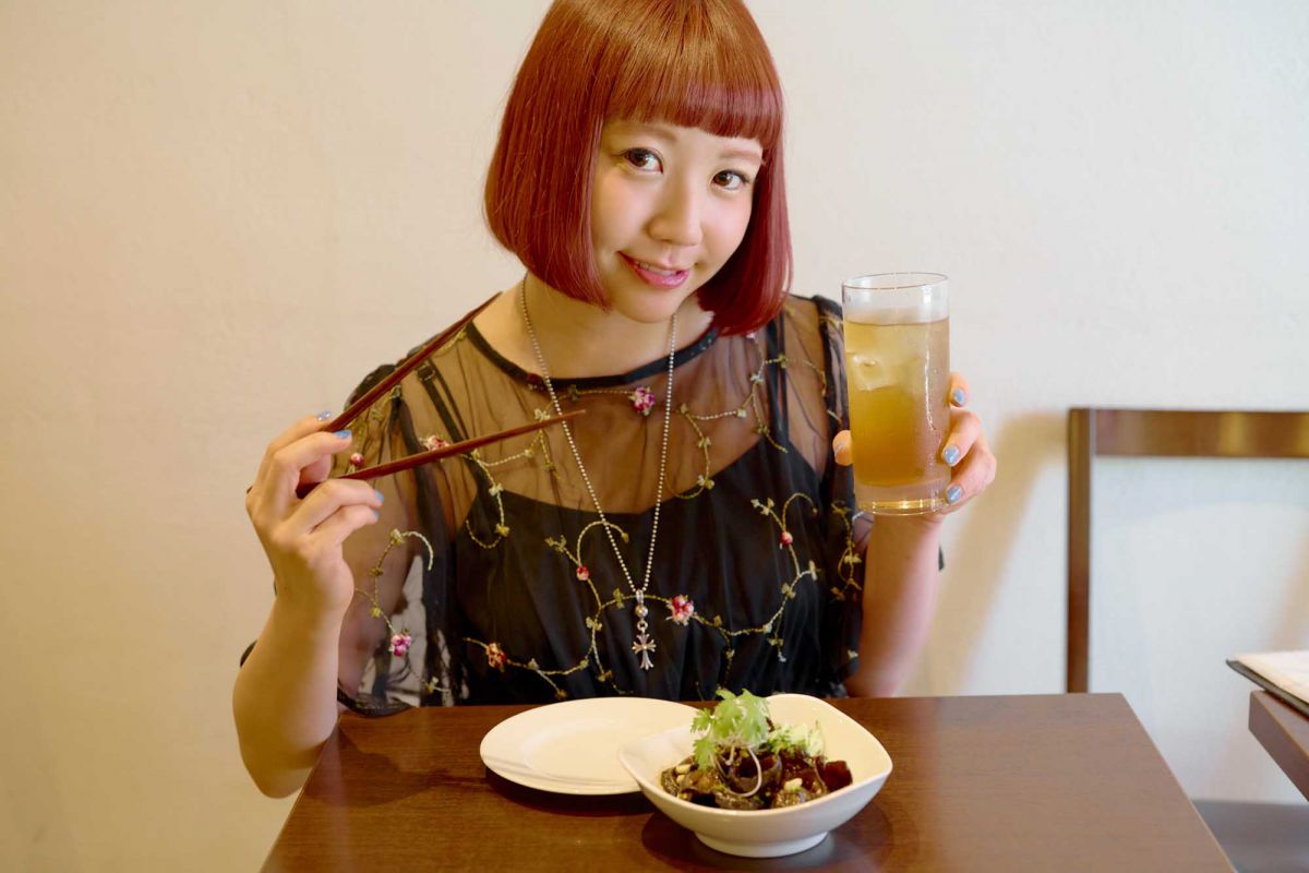 勢いに乗って「自家製薬膳サングリア(赤)」(690円)も注文。龍眼・なつめ・グローブ・八角を煮出したものとフルーツがたくさん入ったオーガニックワインは今まで出会ったことがない深い味わいでした。こりゃ病みつきになる。