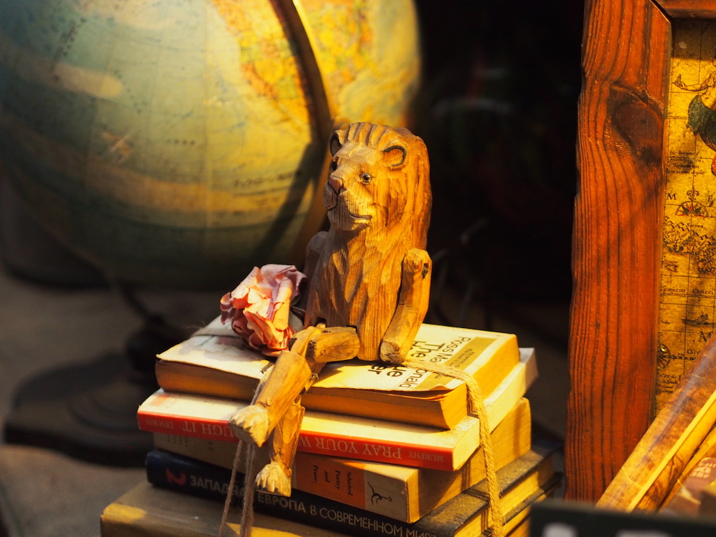 恵比寿駅西口の駅前から恵比寿銀座を抜けて徒歩約3分、ビルとビルの間にある、一瞬見失いそうなぐらい細い階段を登っていくと…なにやら怪しげな入り口が。ここがワインバル&カフェ「ライオンのいるサーカス」です。