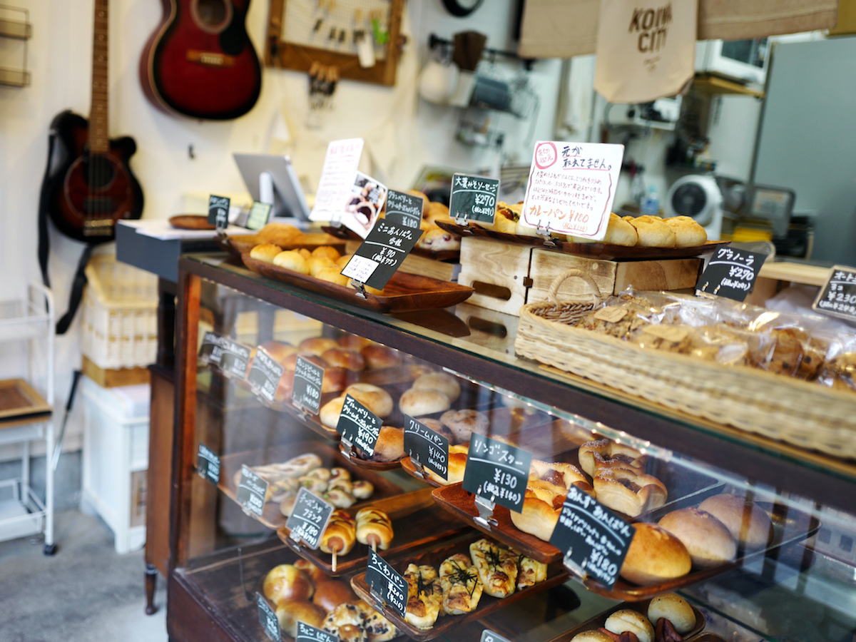店内に並ぶパンは、バリエーション豊かでどれも素朴な味わいが魅力!食べる人にとってわかりやすく親しみやすいパン作りを意識されているそう。また、定番メニューに加え、酒粕ブレッドやあん入り食パンなどの曜日限定メニューもあり、毎日来ても楽しめる工夫がされています。