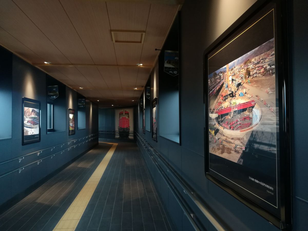 下今市駅の転車台広場へは専用通路を通って向かいます。長門市駅や三次駅から転車台を移転したり、下今市駅で工事している写真、蒸気機関車とともに走る客車やディーゼル機関車などの説明があります。