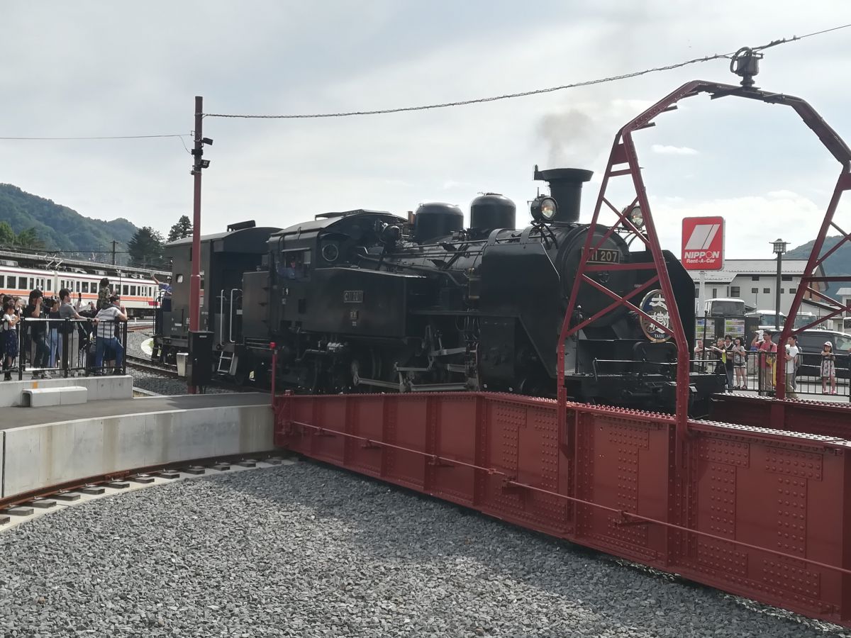 鬼怒川温泉駅前の転車台は、JR西日本の芸備線三次駅(広島県)から譲ってもらったものです。
