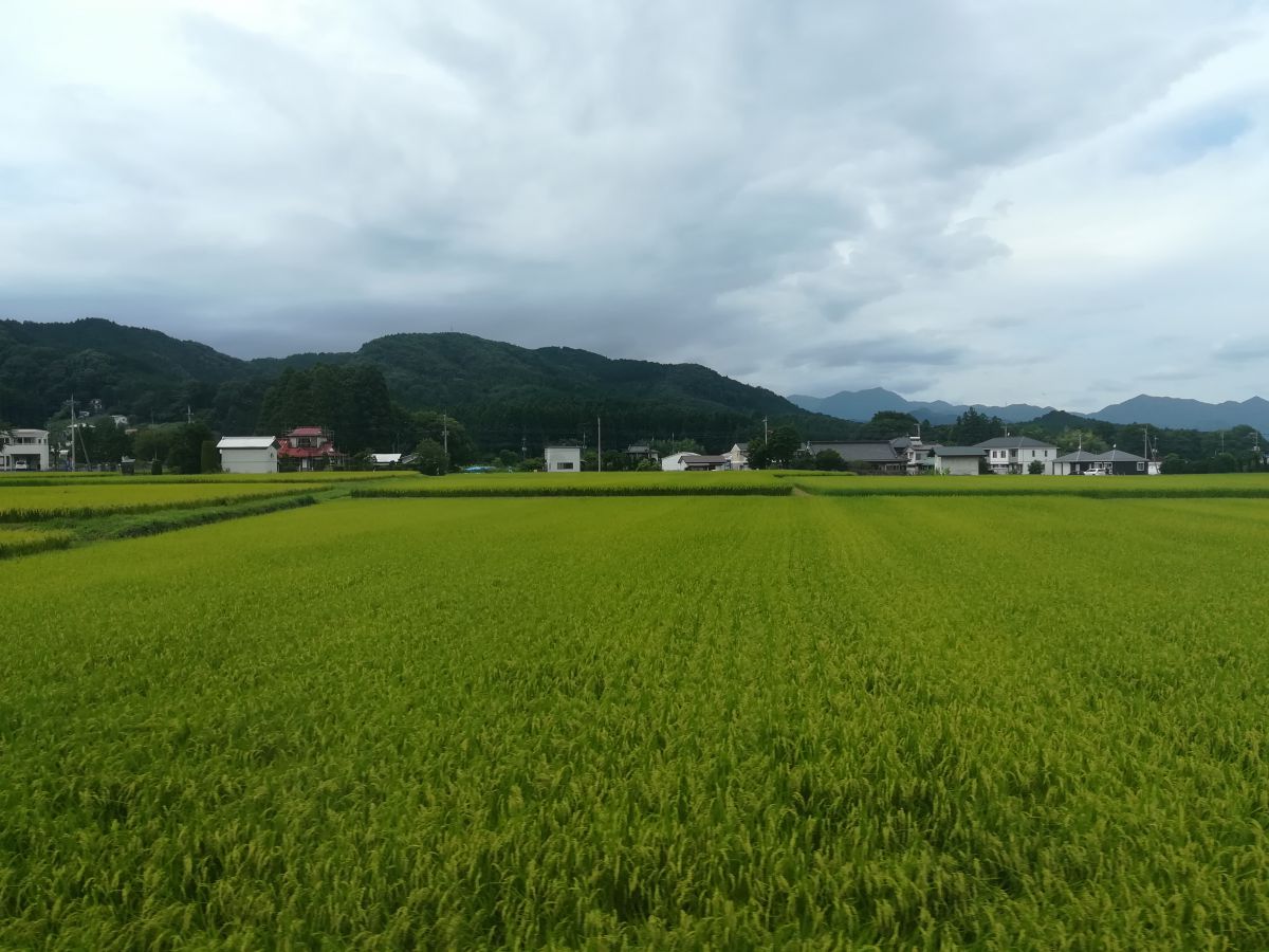 見渡す限りの田んぼ、清々しい川、緑深い山々など、のどかな車窓の風景が広がります。