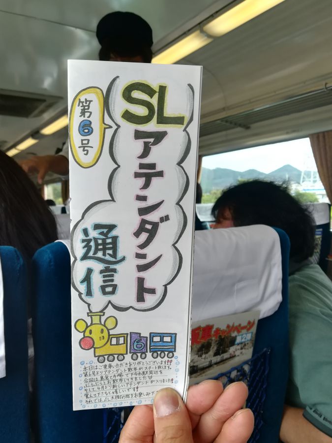 車内ではSL観光アテンダントが、地元の見どころを紹介した手作りのパンフレットがもらえます。プロのカメラマンによる写真撮影サービスも(写真購入は特別フレーム付きで1100円)。