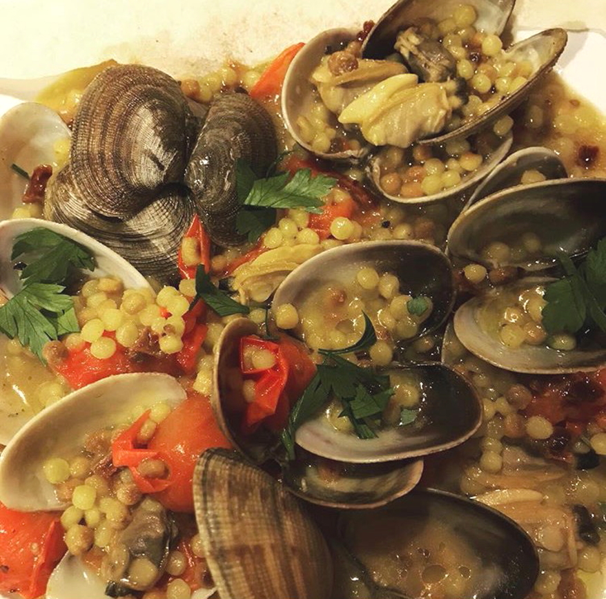 パスタは2種類が楽しめます。こちらはそのひとつで、粒状のパスタ・フレーゴラに北海アサリとチェリートマトを合わせたもの。