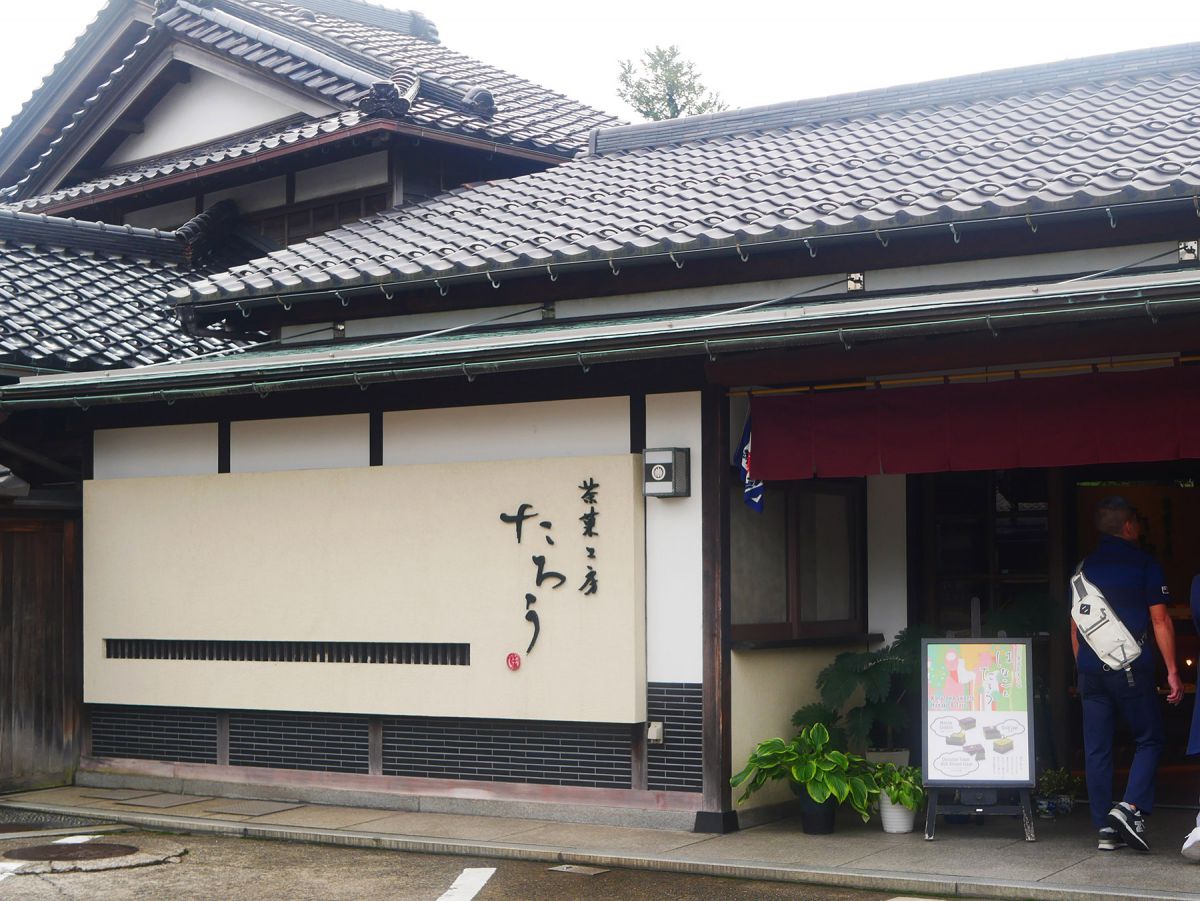 『茶菓工房たろう』は2005年に金沢市郊外でオープンした、市内では比較的新しい和菓子専門店です。「鬼川店」はその翌年に出店したカフェを併設する店舗で、長町武家屋敷の静かな町並みにありながらも、早朝から観光客で賑わっています。