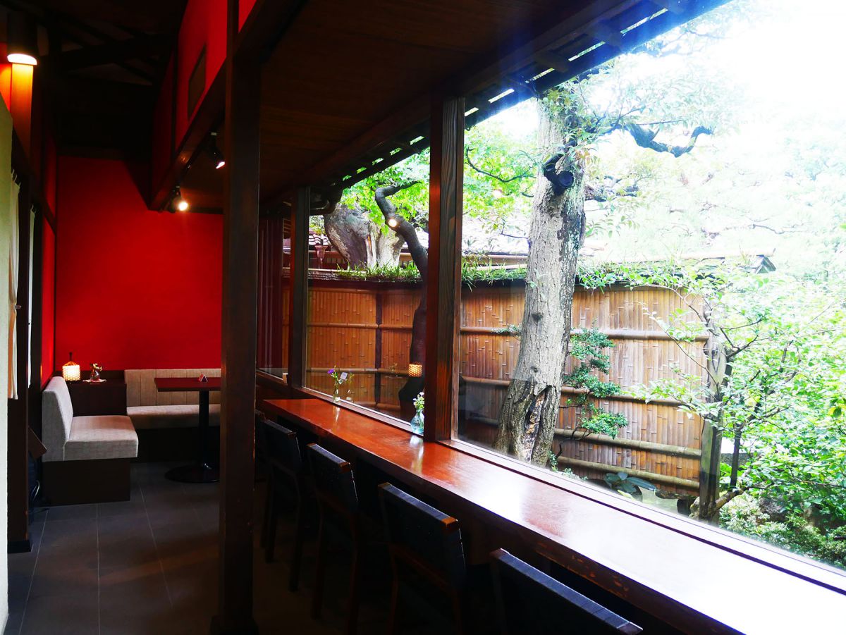 カフェスペースでは、武家屋敷跡・野村家の庭園を眺めながらくつろげます。せっかくなので、ミシュランの観光地格付けで2つ星を獲った景観に向き合うカウンター席へ…なんだか時間の流れを穏やかに感じます。