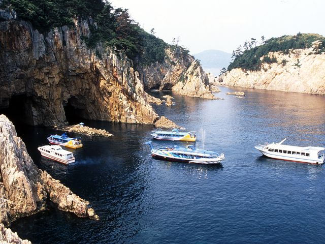 奇岩や洞門が点在する、自然が織りなす芸術の島