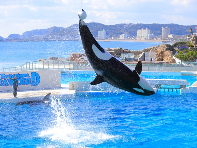房総半島の人気観光スポットといえば、鴨川シーワールド。川や海の生物の展示はもちろん、シャチの大ジャンプやイルカのスピン、ベルーガの目隠しなど、さまざまなパフォーマンスが楽しめるショーが大きな見どころです。動物たちのがんばりに、感動したり驚いたり。飛んでくる水しぶきにキャーキャー歓声を上げながら、ドキドキの時間を過ごしましょう。