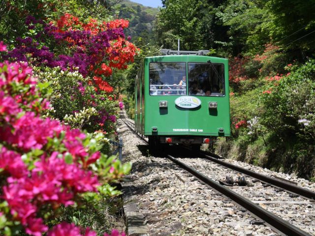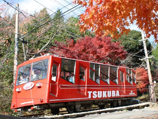 筑波山神社脇の宮脇駅と、山頂駅を結ぶケーブルカー。秋は紅葉、冬は雪景色、春から夏は緑と花々など、四季折々の景色が楽しめるのがポイント。「もみじ」と「わかば」と名付けられた赤と緑の車体がかわいらしいので、ぜひ撮影を。