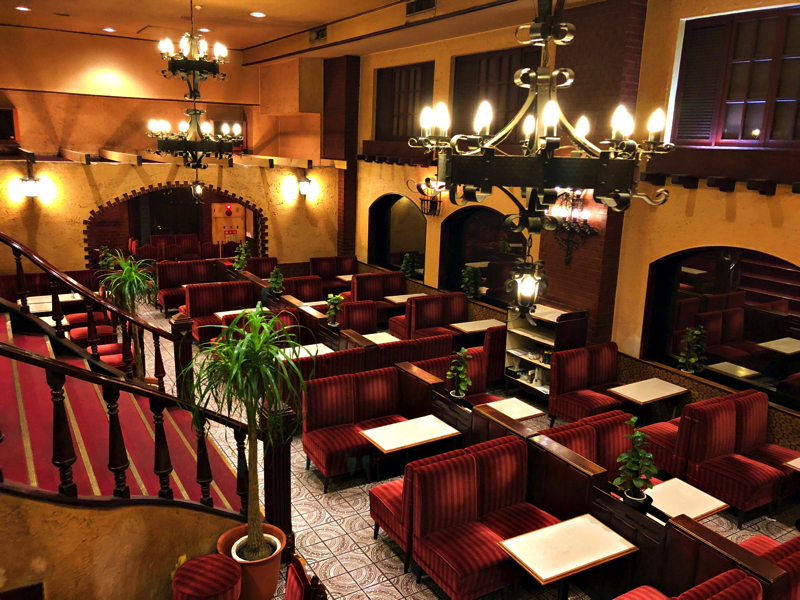 この空間は、戦後、海外への憧れをもとに作られたんだとか。落ち着いたライティングのなか、日光が入らないせいか時間を忘れてゆったりとした時間を過ごすことができますよ。
